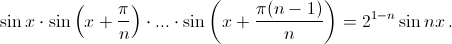 Для каждого натурального n > 1 существует такое число cn, что для любого x произведение синуса числа x, синуса числа x + π/n, синуса числа