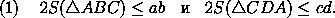 Итак, пусть в выпуклом четырехугольнике ABCD (рис. 2) AB=a , BC=b , CD=c , DA=d , площадь ABCD равна5. Площадь треугольника всегда не превышает