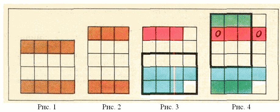 Предположим, что нам удалось заполнить лист клетчатой бумаги требуемым образом. Заметим, что в двух закрашенных на рис.1 прямоугольниках