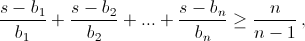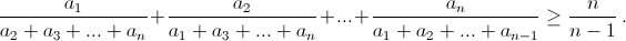 в). Обозначим s = a1 + a2 + ... + an, bi = s – ai. Нам нужно доказать, что