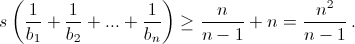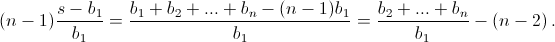 Но b1 + b2 + ... + bn = ns – a1 – a2 – ... – an = (n – 1)s, откуда