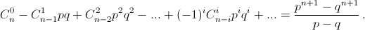 (сумма берётся по всем целым i, 0 ≤ i ≤ n/2). б) Докажите, что если p и q – различные числа и p + q = 1, то
