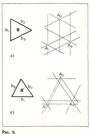Bравнобедренный, то шесть.) На рис. 9а или 9б можно выбрать любую тройку прямых, попарно не параллельных и проходящих (по одной) через точки