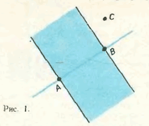 а) Отметим, что для заданных точек A и B точка C , лежащая вне прямой AB и вне полосы, образованной перпендикулярами к прямой AB в точках A и B , образует с точками A и B невырожденный тупоугольный треугольник (см.рис.1). Для каждой пары точек из заданного конечного множества построим полосу и прямую в соответствии с рис.1. Конечное число полос конечной ширины и прямых, очевидно, не покроют всей плоскости, следовательно, существует точка, образующая с каждой парой точек из заданного множества тупоугольный треугольник, что и требовалось доказать.
