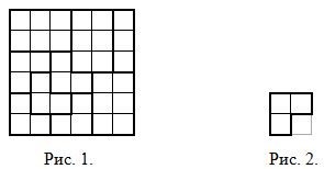 k= 1. Занумеруем строки квадрата от 1 до 6 снизу вверх и сопоставим каждой клеточке прямоугольника (или уголка) номер строки, в которой она находится. Нетрудно заметить, что сумма номеров строк (по клеточкам) для любого прямоугольника делится на 3, а для любого уголка – не делится. Сумма номеров строк квадрата (по клеточкам) делится на 3, значит, при