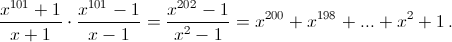 Доказать, что в произведении (1 – x + x² – x³ + ... – x99 + x100)(1 + x + x² + x³ + ... + x99 + x100) после раскрытия скобок и приведения подобных членов не остаётся членов, содержащих x в нечётной степени.