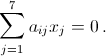 Решить систему: 10x1 + 3x2 + 4x3 + x4 + x5 = 0, 11x2 + 2x3 + 2x4 + 3x5 + x6 = 0, 15x3 + 4x4 + 5x5 + 4x6 + x7 = 0, 2x1 + x2 – 3x3 + 12x4 – 3x5 + x6 + x7 = 0, 6x1 – 5x2 + 3x3 – x4 + 17x5 + x6 = 0, 3x1 + 2x2 – 3x3 + 4x4 + x5 – 16x6 + 2x7 = 0, 4x1 – 8x2 + x3 + x4 – 3x5 + 19x7 = 0.