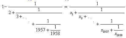 x1 = 1, x2 = 1, x3 = 3, x4 = 4, ..., x1958 = 1958.