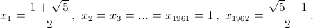 Заметим, что произведение x1...xk удовлетворяет уравнению x + 1/x = 1 ⇒ x2 – x – 1 = 0. Поэтому x1...xk =
