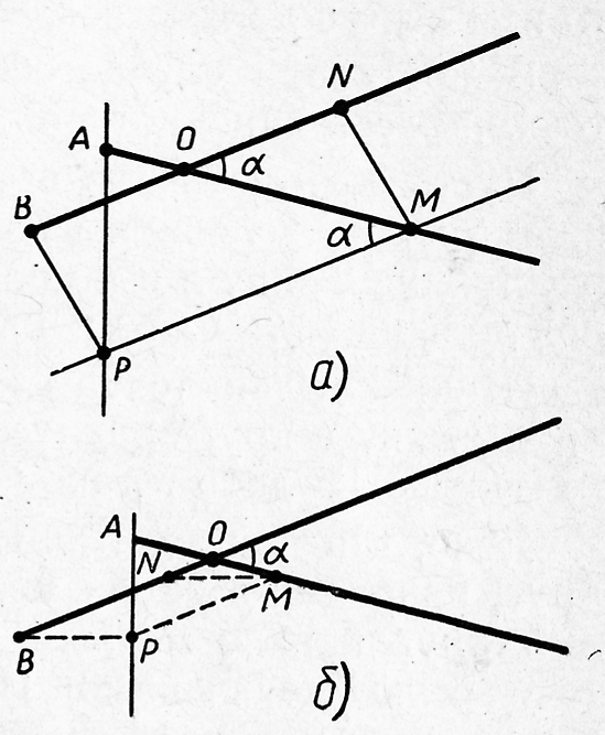 некоторой вполне определённой прямой (составляющей угол$\displaystyle \beta$=$\displaystyle {\frac{180^{\circ}-\alpha}{2}}$с данным лучомAO).