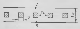 Посередине между двумя параллельными улицами стоят в один ряд одинаковые дома со стороной, равной a. Расстояние между улицами – 3a, а расстояние между двумя соседними домами – 2a (см. рис.).