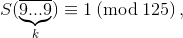 Таким образом, числа S(N) и S(N + 1) делятся на 125 тогда и только тогда, когда 9k ≡ 1 (mod 125) и S(a1...an) ≡ 124 (mod 125).