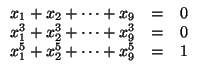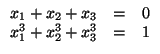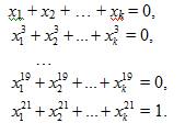 x1 = x2 = λ, x3 = μ. Для λ и μ мы получаем уравнения 2λ + μ = 0, λ3 + μ3 = 1, откуда находим μ = – 2λ и – 6λ3 = 1.