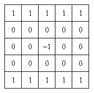 Ниже приведён пример таблицы 5×5 с нужными свойствами. Аналогично строится таблица n×n для любого нечётного n (при n = 1 достаточно поставить в единственную клетку число 1).