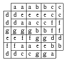 Весь комплект косточек домино, кроме 0-0, уложили так, как изображено на рисунке. Разным буквам соответствуют разные цифры, одинаковым — одинаковые. Сумма очков в каждой строке равна 24. Попробуйте восстановить цифры.