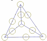 Можно ли в кружочках расставить все цифры от 0 до 9 так, чтобы сумма трёх чисел по любому из шести отрезков была бы одной и той же?