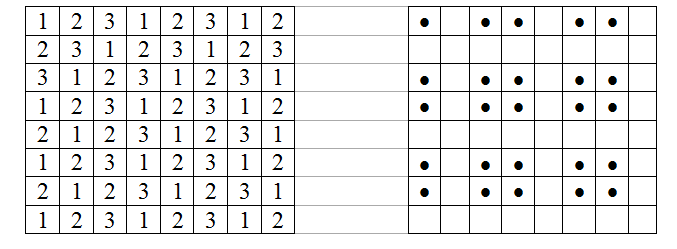 Первый способ. Впишем во все клетки доски цифры, как показано на рисунке слева. Теперь достаточно заметить, что первоначально белых клеток с цифрой 1 больше, чем клеток с цифрой 2, а каждым ходом можно перекрасить ровно одну клетку с цифрой 1 и одну – с цифрой 2.