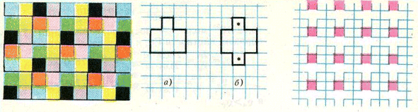 а) каждые две клетки на расстоянии 6 были покрашены в разные цвета? б) каждые четыре клетки, образующие фигуру формы буквы Г, были покрашены в четыре разных цвета? (Расстояние между клетками – наименьшее число линий сетки, горизонтальных и вертикальных, которые должна пересечь ладья на пути из одной клетки в другую.)
