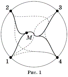 1 → 4, 2 → 3, имеющая хоть одну общую точку, будет соответствовать некоторой паре 1 → 3, 2 → 4.)