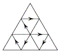 На рисунке приведена замкнутая траектория бильярдного шара, проходящая три раза через центр правильного треугольника.