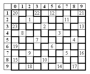 в) Запишем двузначные числа в таблицу 9·10 так, что первая цифра – номер строки, а вторая – номер столбца (см. рис.).