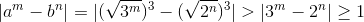 Олимпиадная задача по числам: существуют ли иррациональные a и b, чтобы [a^m] ≠ [b^n] для всех натуральных m и n?