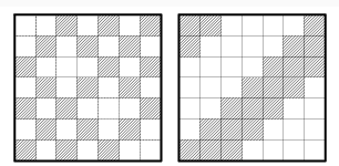 В квадрате 7×7 клеток закрасьте некоторые клетки так, чтобы в каждой строке и в каждом столбце оказалось ровно по три закрашенных клетки.