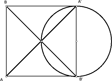 Так как отрезки AA' и BB' пересекаются, прямые AB и A'B' тоже пересекаются или параллельны. Обозначим их точку пересечения (возможно, бесконечно удалённую) через P. Так как P лежит вне двугранного угла при ребре CD, плоскость CDP не пересекает вписанную сферу. Поэтому существует проективное преобразование, сохраняющее сферу и переводящее эту плоскость в бесконечно удалённую. В результате этого преобразования отрезок A'B' станет диаметром сферы, а AB будет ему параллелен. Так как точка пересечения AA' и BB' лежит на сфере, расстояние от её центра до AB равно удвоенному радиусу (на рис. слева показана проекция на плоскость ABA'B').