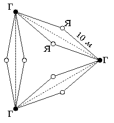– Вот посмотришь, какой я необыкновенный сад посадил! У меня там растут груши и яблони, причём яблони посажены так, что на расстоянии 10 метров от каждой яблони растёт ровно две груши.