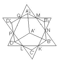 Первый способ. Выберем плоскость проекции так, чтобы она проходила через центр куба. Сечением куба этой плоскостью является правильный шестиугольник MNKLPQ (рис. слева). Проекцией куба на эту плоскость является шестиугольник A'1B1B'C'D'D'1 (рис. в центре), вершины которого являются центрами правильных треугольников, построенных на сторонах шестиугольника MNKLPQ, поэтому полученный шестиугольник также является правильным, причём вершины A и C1 куба проектируются в его центр. Проекцией грани АА1В1В является параллелограмм A'A'1B'1B'. Его площадь в три раза меньше площади проекции куба.