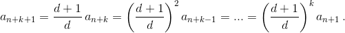 Числа d и d + 1 взаимно просты, а an+1 может делиться только на конечную степень d.