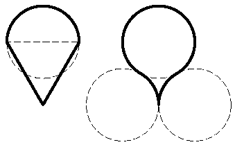 Поэтому площадь второго головастика равна Sокр+Sтр-(Sокр/2)=Sокр+(Sокр/2). Очевидно, это совпадает с площадью второго головастика. Идея второго решения. Наложим одного головастика на другого как показано на рис. 21. Нетрудно проверить, что если отрезать от первого головастика заштрихованные сегменты, и повернуть их вокруг точек A1 и B1 на 180o, то получится в точности второй головастик.