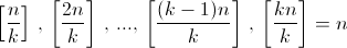 1. Обозначим mj = jn/k (j = 1, ..., k) и докажем, что для искомого набора номеров должны быть выполнены неравенства nj ≥ mj. (*)