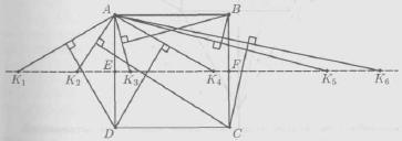 На нижней части рисунка (вариантK3иK4) проведены пунктиром два поясняющих отрезка:AK3и серединный перпендикуляр к нему, проходящий через точкуВи ещё одну построенную точку, являющуюся вершиной равностороннего треугольника с основаниемDC.
