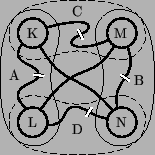 Пусть первый стратегический набор разбивает множество баз на подмножества A и B, а второй – на C и D. Обозначим K = A ∩ C, L = A ∩ D,