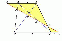 Обратно, взяв трапецию с основаниями AB = 5, CD = 10 и отложив на их продолжениях отрезки AE = 3 и CJ = 2, аналогично проверим, что