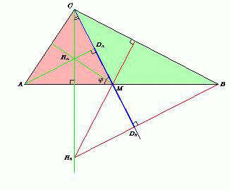 Точки Ha и Hb лежат лежат на перпендикуляре, опущенном из C на прямую AB. Отрезок DaDb – проекция отрезка AB на прямую CM, а так как угол между прямыми AB и CM равен φ или 180° – φ,  то DaDb = AB |cos φ| = c |cos φ|.