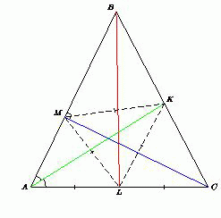 В треугольнике ABC проведены биссектриса AK, медиана BL и высота CM. Треугольник KLM – равносторонний.