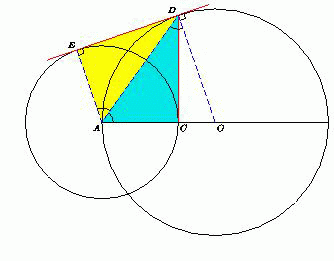 Пусть O – центр первой окружности, E – точка касания второй окружности с общей касательной. Треугольник AOD – равнобедренный, поэтому