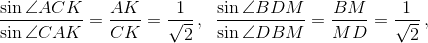 а так как sin∠ACK = sin∠BDM, то sin∠CAK = sin∠DBM. Поэтому либо ∠CAK = ∠DBM, либо ∠CAK + ∠DBM = 180°.