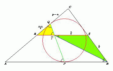 Пусть BC = a, AC = b, AB = c, полупериметр треугольника ABC равен p, а точки R и S лежат на сторонах AC и BC соответственно. Тогда CQ = p – c,