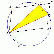 Центр окружности, описанной около каждого из треугольников APQ, лежит на серединном перпендикуляре l к отрезку PQ. Поскольку все треугольники PCQ – равнобедренные (CP = CQ), то l – биссектриса угла PCQ, то есть угла C. Окружность симметрична относительно каждого своего диаметра, поэтому точка A', симметричная точке A относительно прямой l, лежит на описанной окружности каждого из треугольников APQ. Итак, все указанные окружности проходят через точку A'.