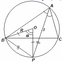 Из условия следует, что АР – биссектриса угла А, то есть ∠ВAР = α/2 (см. рис.). Поэтому ВР = 2R sin α/2. По лемме о трезубце (см. задачу 153119) IP = ВР.