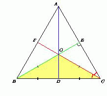 AB = AC, а O – точка пересечения высот треугольника ABC. Тогда и биссектриса CF является его высотой. Поэтому и AC = BC.