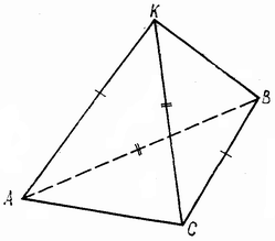 Допустим, что известна площадь грани ABC=S (рис.). Запишем, что периметры всех граней равны: