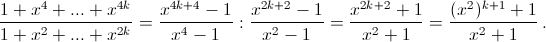 Делится ли многочлен 1 + x4 + x8 + ... + x4k на многочлен 1 + x² + x4 + ... + x2k?
