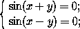 Из первого уравнения получим x+y=kπ . Из второго уравнения x-y=k1π . Отсюда x=((k+k1)π)/2, y=((k-k1)π)/2.