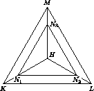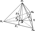 DD1 ⊥ AB, то AB ⊥ CED, то есть DE и CE – высоты треугольников ABD и ABC. Из аналогичных рассуждений для других рёбер следует, что точки A1, B1, C1 и D1 – ортоцентры граней тетраэдра ABCD. Из этого факта и из условия вытекает, что все грани данного тетраэдра являются остроугольными треугольниками. Как известно (см. задачу 152886), высоты остроугольного треугольника являются биссектрисами ортотреугольника, то есть ортоцентр остроугольного треугольника есть центр окружности, вписанной в ортотреугольник. Проведём через точку H плоскость α, параллельную плоскости ABC. Пусть α пересекается с прямыми DE, DF, DG, D1C1, D1A1, D1B1 соответственно в точках K, L, M, N1, N2, N3 (рис. слева). Тогда сфера касается граней пирамиды D1N1N2N3, имеющих вершину D1. Пусть X, Y, Z – точки касания (рис. справа).