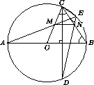 Решение 2: Рассмотрим треугольники AOC и DBC. Они равнобедренные, следовательно, ∠ACO = ∠CAB и ∠DCB = ∠CDB. Но ∠CAB = ∠CDB. Поэтому эти треугольники подобны, а так как ∠CAM = ∠CDN (вписанные, опирающиеся на дугу CE), то точка M делит отрезок OC в том же отношении, что и точка N делит отрезок BC.