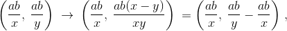 Одновременно с операциями на доске будем вести запись в тетради. Но вместо каждого числа x, появляющегося на доске, будем писать в тетради число ab/x (a и b – исходные числа). Когда на доске пара чисел (x, y), где x > y, заменяется на пару